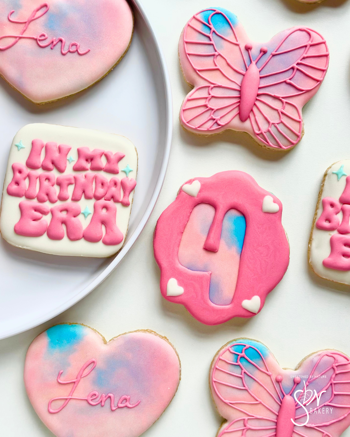 All cookies are individually heat-sealed and placed in a bakery box adorned with a bow or tag. Custom sets start at $55/dozen and are sold in increments of 12.